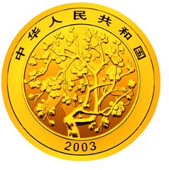 該套金銀幣包括1/3盎司金幣和1盎司銀幣各一枚,兩枚幣的正、背面圖案相同。正面均為臘梅鬧春圖,并刊國名、年號;背面均為春節(jié)吉祥裝飾圖,并刊“春節(jié)”字樣和面額。