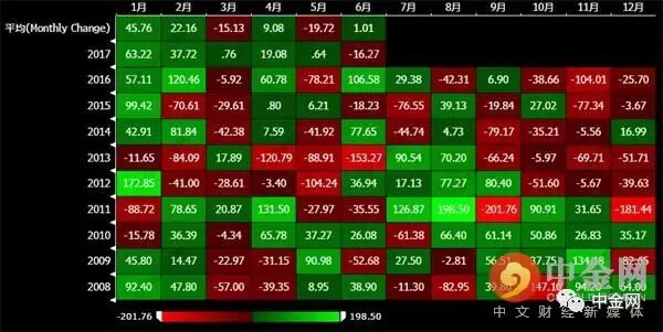 摩根大通分析稱(chēng),黃金上半年各個(gè)月份的漲跌帶有很強(qiáng)的季節(jié)性因素,從圖上可以判斷,預(yù)計(jì)下半年尤其是11、12月份,黃金的走勢(shì)會(huì)變得較為疲軟。
