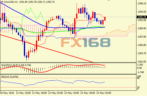 FX168財(cái)經(jīng)報(bào)社(香港)訊 周三(5月23日),現(xiàn)貨黃金震蕩交投于1293美元附近,隔夜金價(jià)沖高回落,主要受美元指數(shù)走勢(shì)影響。本交易日將迎來(lái)歐洲央行以及美聯(lián)儲(chǔ)利率決議,這有可能成為黃金打破短期震蕩區(qū)間的動(dòng)力。