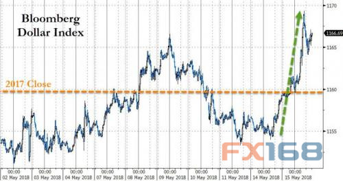(彭博美元即期指數(shù)走勢 圖片來源:Zerohedge、FX168財經(jīng)網(wǎng))