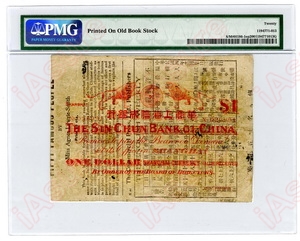 (lot 39,估價美金80,000-160,000元)。1906年奉天官銀號伍角銀元票PMG EF-40(lot 37,估價美金10 ,000-20,000元)。1912年華商上海信成銀行壹元PMG VF-20孤品(lot 40,估價美金20,000-30,000元)。