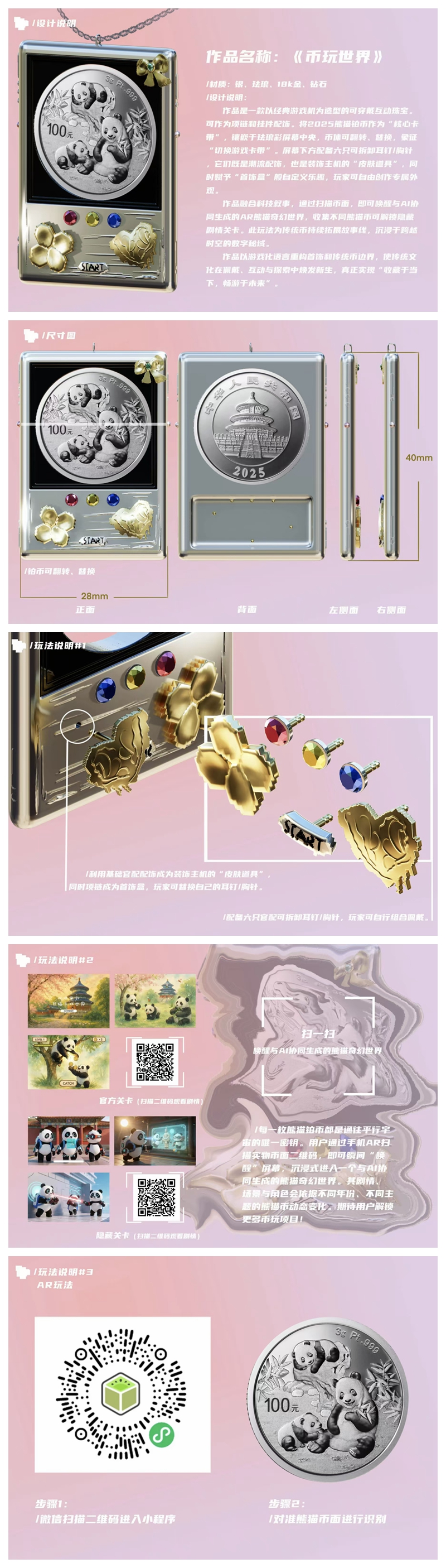 “2025熊貓鉑幣配飾設(shè)計(jì)大賽”,聚焦2025版熊貓3克精制鉑幣展開(kāi)時(shí)尚配飾設(shè)計(jì),力求突破原有幣類收藏限制,探索貴金屬與時(shí)尚的跨界融合。