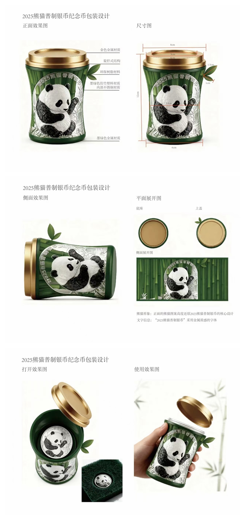 “2025熊貓普制銀幣包裝情景化大賽”,聚焦2025版熊貓30克普制銀幣的包裝設(shè)計(jì),旨在通過(guò)文化情景創(chuàng)意,打造兼具藝術(shù)性與實(shí)用性的包裝方案。
