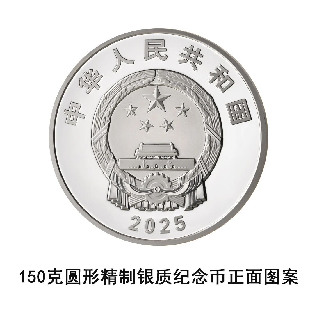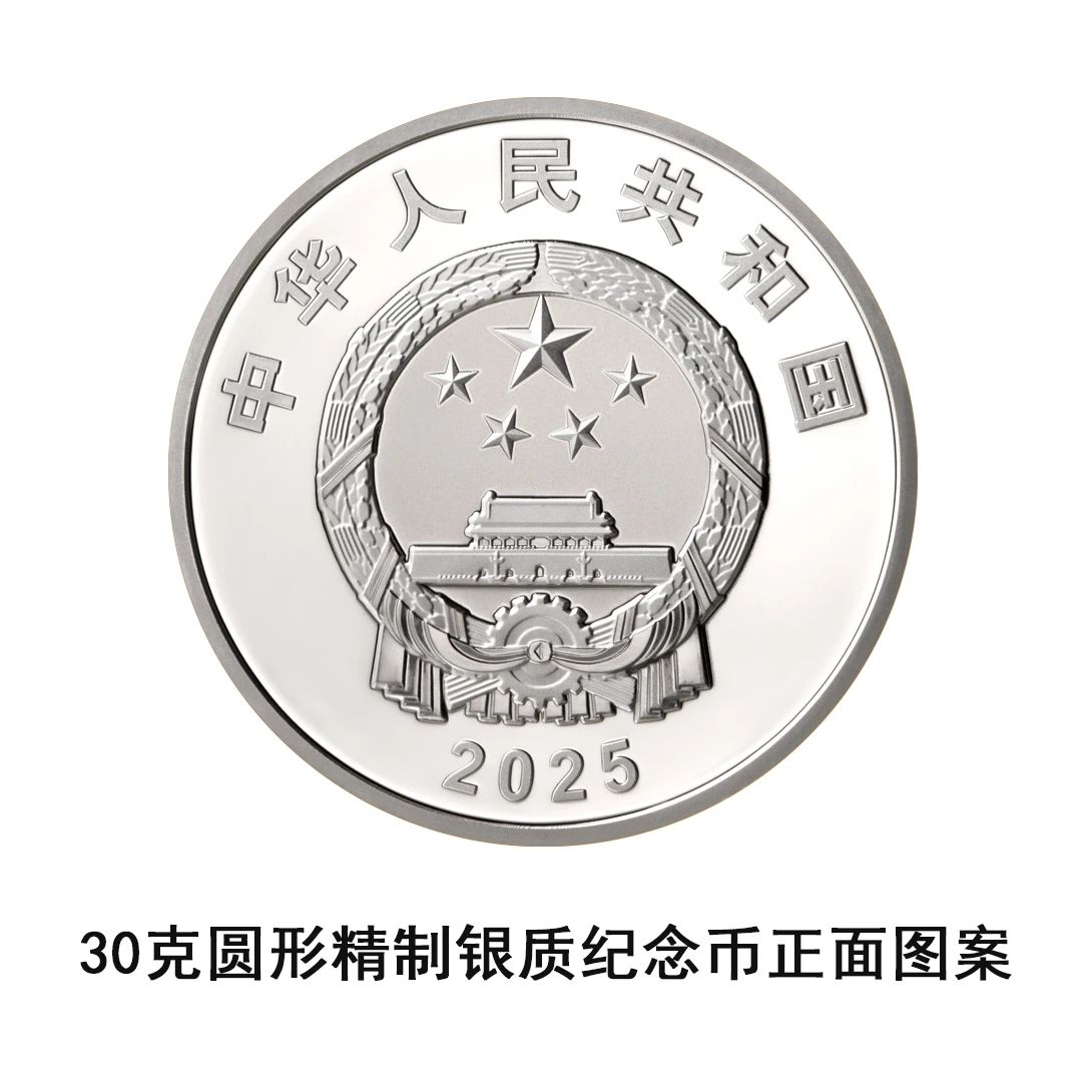 套金銀紀(jì)念幣正面圖案均為中華人民共和國國徽,國徽上方刊“中華人民共和國”國名,下方刊年號“2025”字樣。