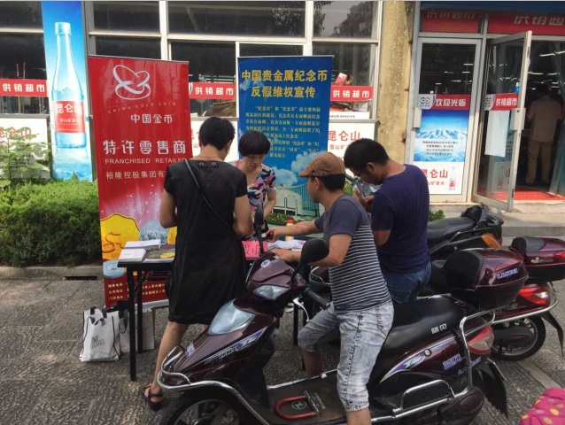 為了提升紹興市民對于貴金屬紀念幣的維權反假意識、鑒別金銀幣真?zhèn)蔚哪芰,裕隆控股集團有限公司于8月13號在供銷超市一院店開展貴金屬紀念幣維權反假宣傳活動。