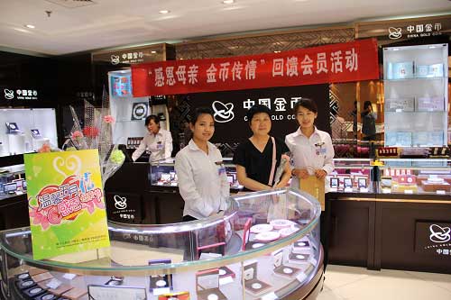 為向偉大的母親們致以最崇高的敬意,同時(shí)感謝廣大顧客對(duì)公司的支持和厚愛(ài),北京全大來(lái)金銀珠寶有限公司于5月12、13日“母親節(jié)”期間在位于藍(lán)島大廈的中國(guó)金幣專柜舉辦了“感恩母親,金幣傳情”回饋會(huì)員活動(dòng),除向女性顧客贈(zèng)送嬌艷的康乃馨外,還推出了購(gòu)物享受雙倍積分的優(yōu)惠措施。